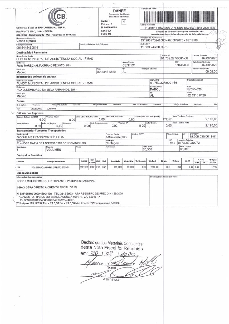 | FITA ZEBRADA AMARELA E PRETA | 10 | R$ 219,00 | R$ 2.190,00 |