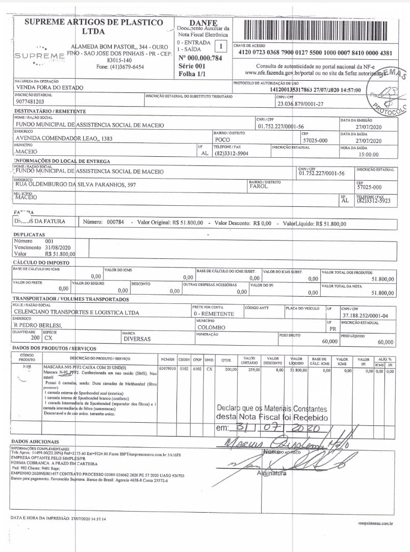 Nota Fiscal nº 784