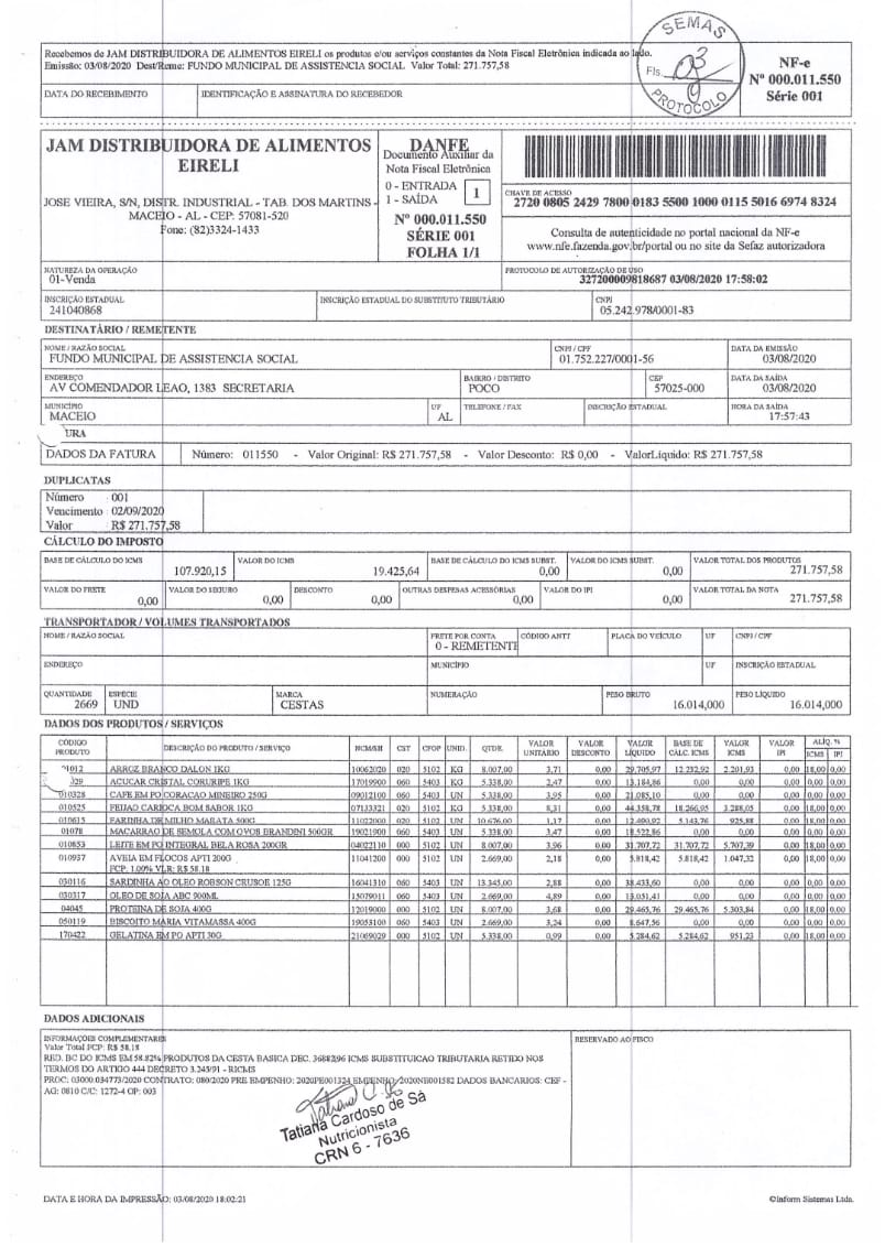 | AÇÚCAR CRISTAL | 5338 | R$ 2,47 | R$ 13.184,86 | |