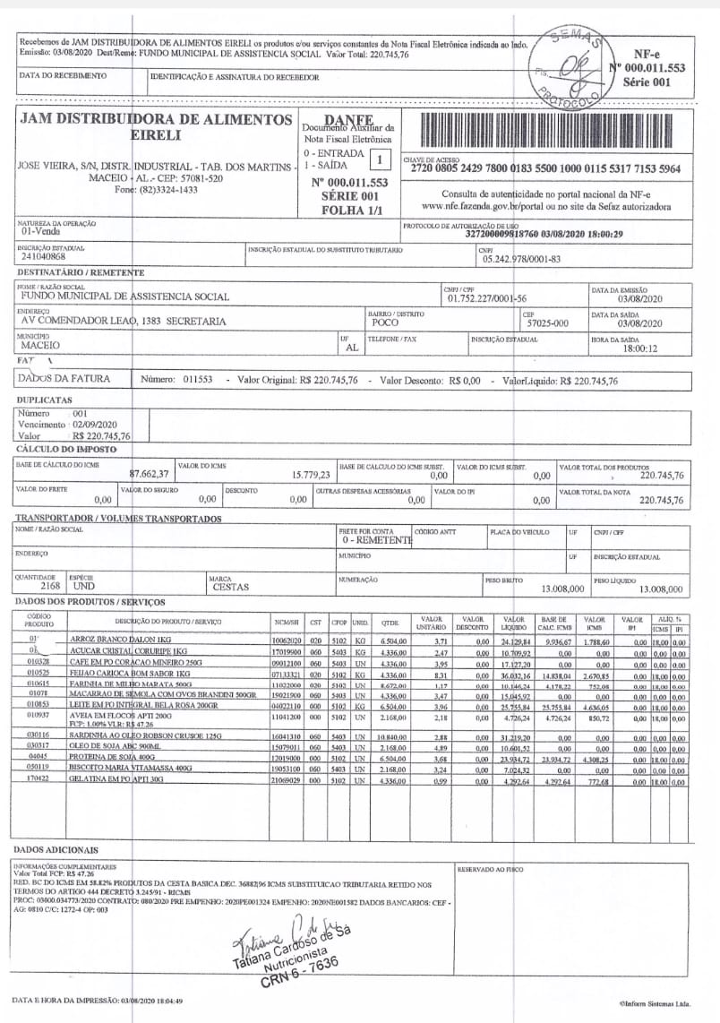 | SARDINHA AO OLEO | 10840 | R$ 2,88 | R$ 31.219,20 | |