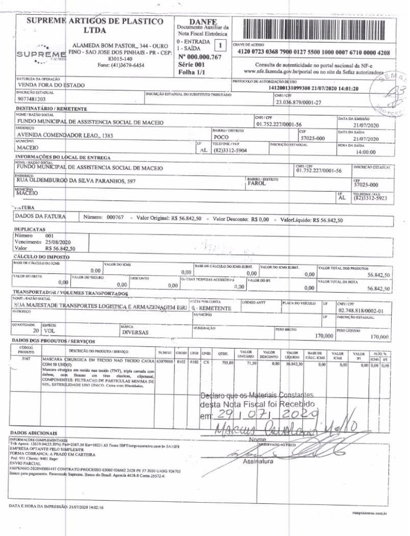 | MASCARA CIRURGICA EM TECIDO NAO TECIDO | 795 | R$ 71,50 | R$ 56.842,50 |