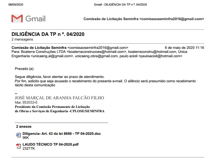 | Diligência | DILIGÊNCIA A EMPRESA GESTÃO ENGENHARIA | 23/06/2020 | Arquivo | |